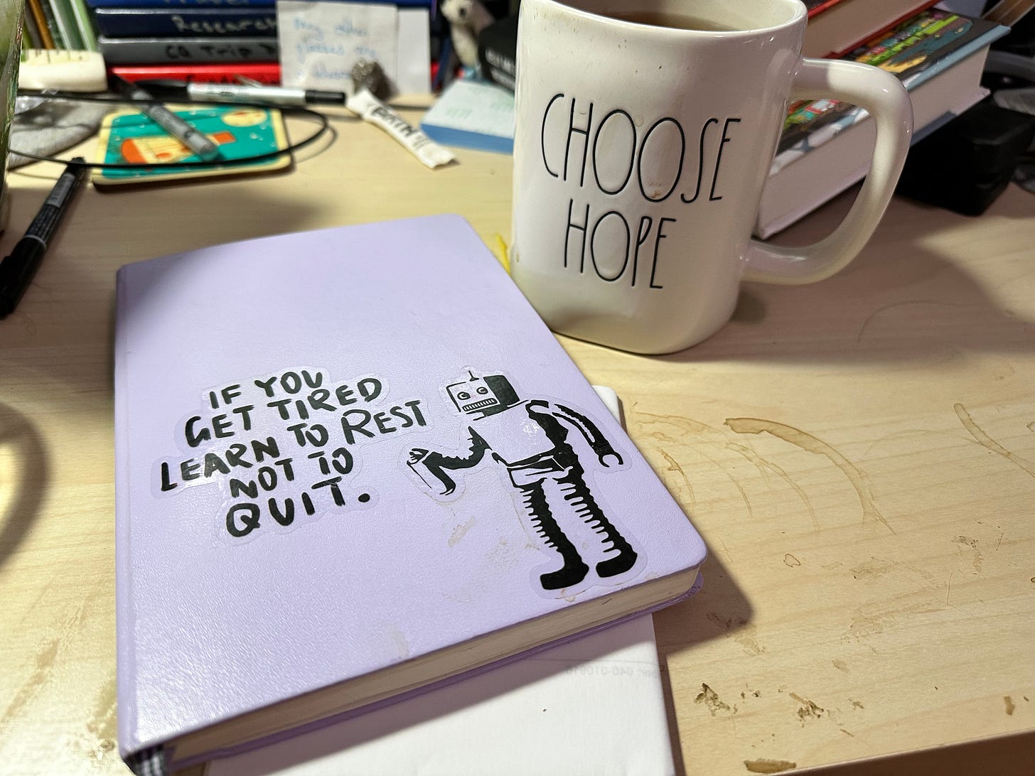 As a sticker on my planner reminds me every single day, “If you get tired, learn to rest, not to quit.” (This is a Banksy quote, btw.)